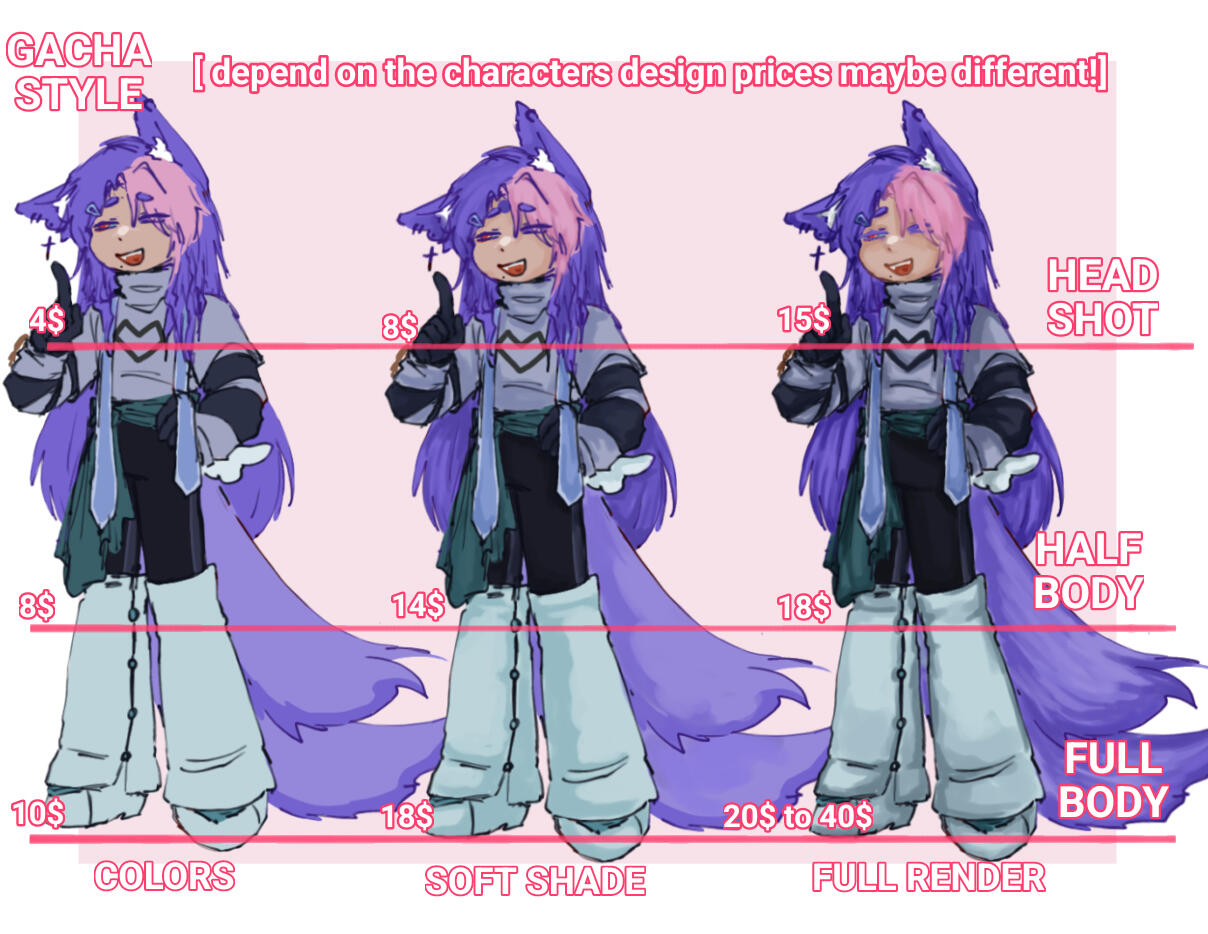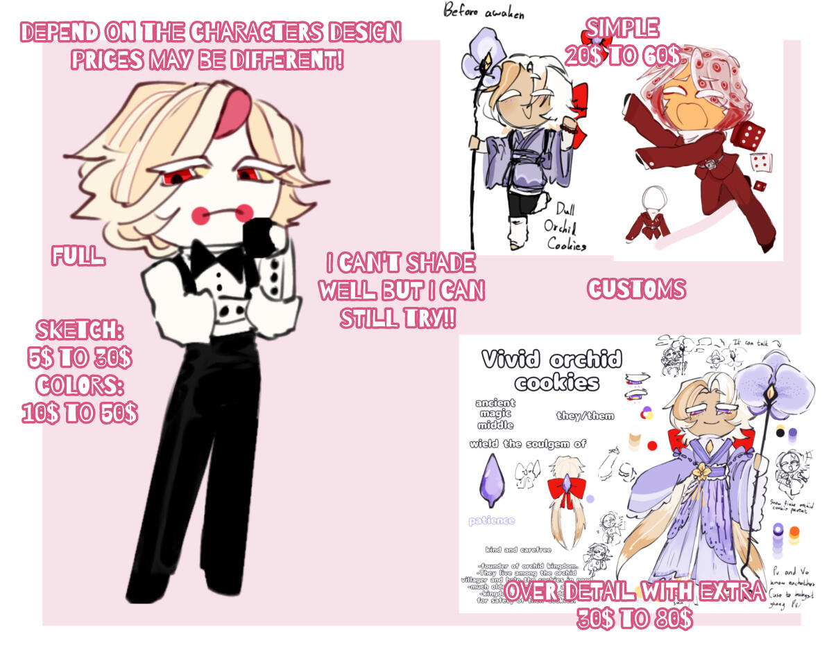 Extra character may be up to 5$ to 30$!